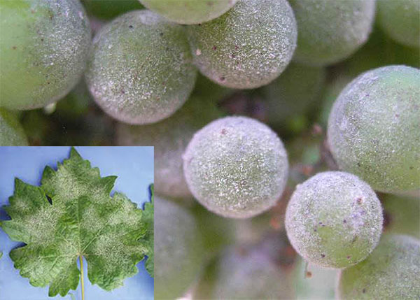 شایعترین بیماری در باغات انگور سفیدک سطحی یا حقیقی مو است که لکههای سفید و آردی روی برگ ظاهر میشود. این بیماری قارچی روی غورهها را نیز بهصورت پودر سفید رنگی میپوشاند و سبب میشود حبهها ترش و نارس باقی بمانند. در حبههایی که رسیدهتر هستند قسمتی از پوست هسته که آلوده به بیماری است رشد نمیکند ولی چون قسمت سالم حبه به رشد خود ادامه میدهد میوه ترک میخورد و دانه آن پدیدار میشود. بهترین راه مبارزه با این بیماری استفاده از گل گوگرد یا گوگرد قابل حل در آب مانند لوزان به نسبت ۴ در هزار است. گل گوگرد در ۳ نوبت شامل مرحله ابتدای رشد، زمان گلدهی و مرحله غوره بر روی گیاه پاشیده میشود. در مناطق با آب و هوای خشک که احتمال گیاه سوزی در اثر مصرف گوگرد وجود دارد میتوان از قارچ کش کاراتان به نسبت ۱ در هزار با این بیماری مبارزه کرد.